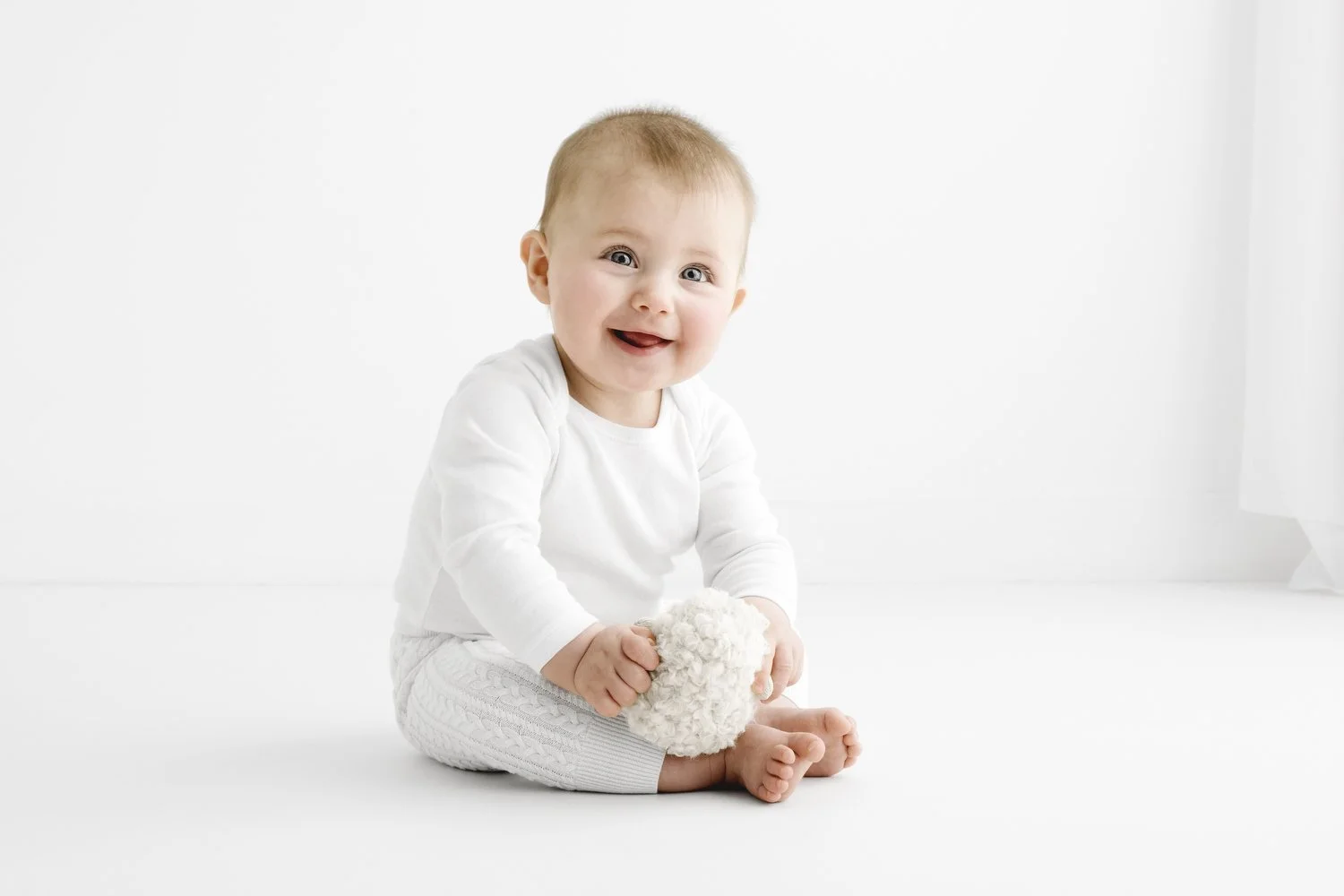Interesting toys and a calm environment will encourage the most active of babies to sit still long enough for a beautiful photograph.