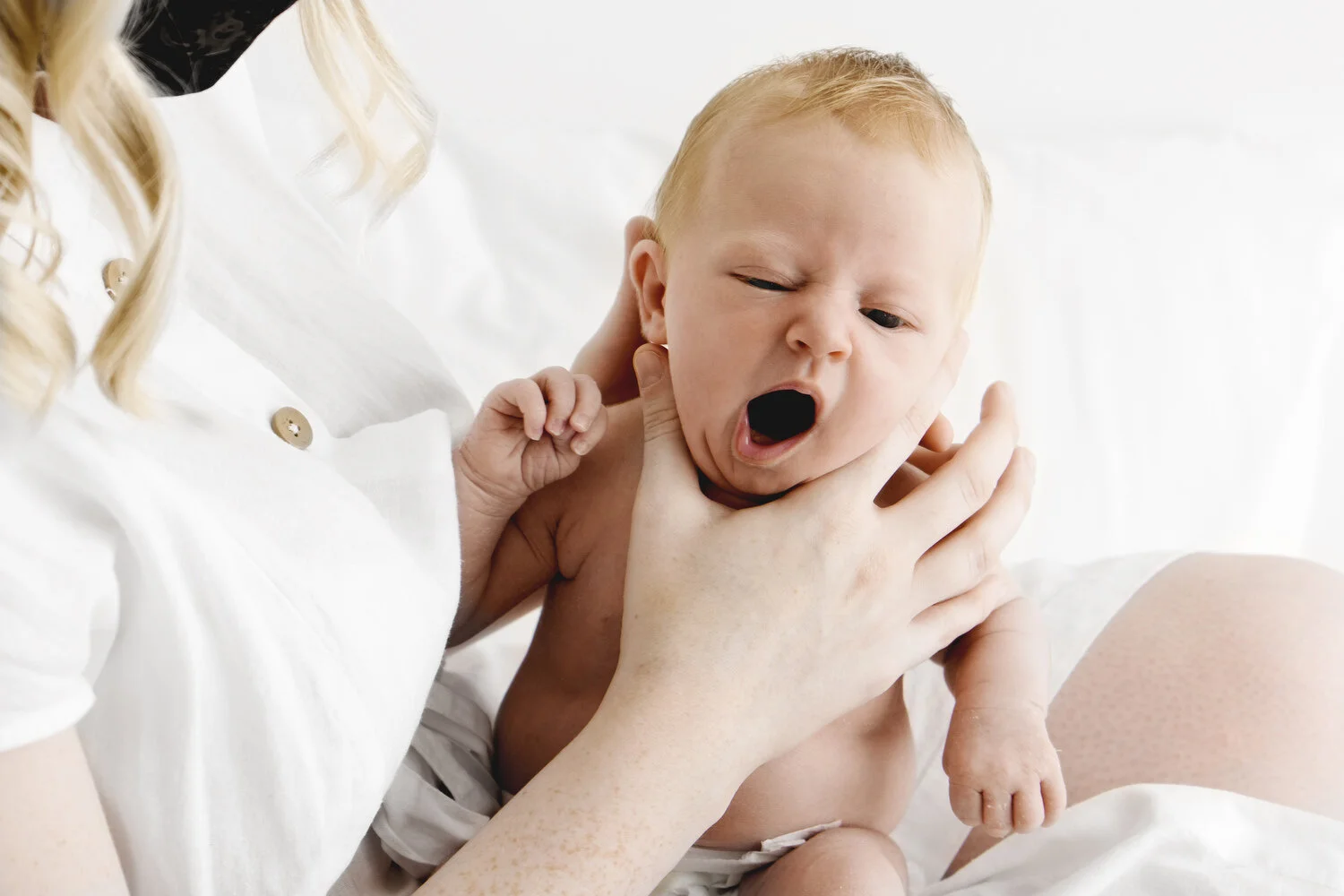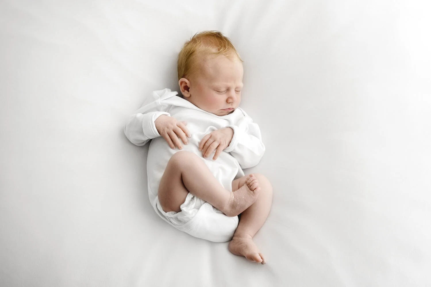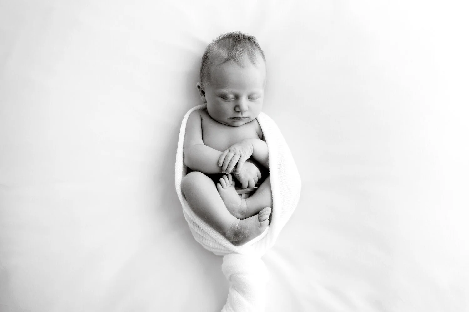 My studio is warm so babies with a tummy full of milk nod off easily letting me create some beautiful portraits of your sleeping baby. I am an expert baby-swaddler and your baby will look cute as a button in a white buritto-wrap.