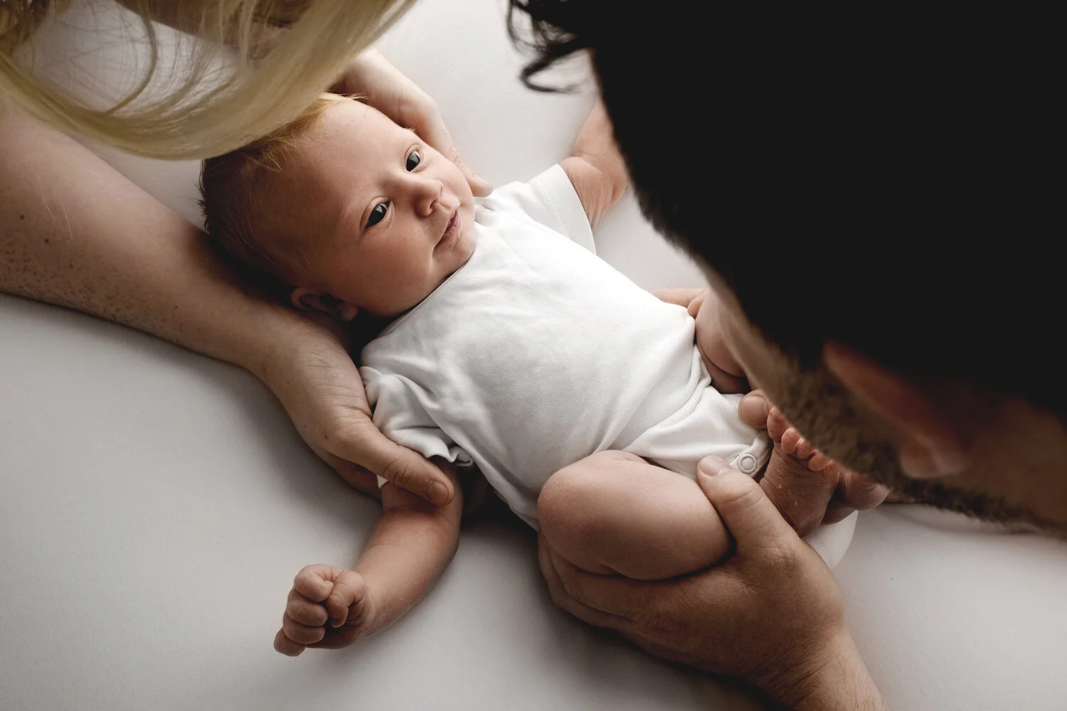 You will both be there to hold their miniature hands and your heart will melt as they curl their fingers around yours. It’s lovely if a baby is awake for their session, in fact, it's great. Perfect little eyes just staring to focus are a memory that you don’t want to lose.